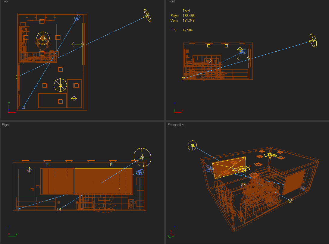 Todavía hay solo 30% de objetos en la escena. Me falta mucho por hacer, y quería preguntar os, como lo hago para que no me coma tanta memoria, a veces me sale 2 frames por segundo cuando acabare el trabajo me saldrá 0.001 fps? O dios mío.