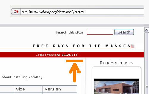 Las versiones de Yafray van numeradas. Al entrar en la página oficial de Yafray fíjate que en la esquina superior derecha te ponen la última versión estable (que es la que te dejan descargar).