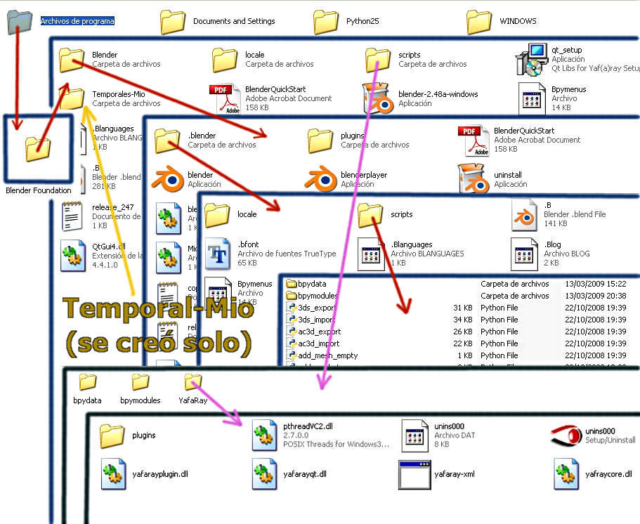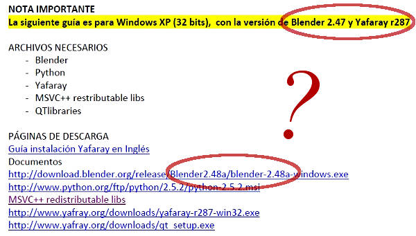 la siguiente guía es para Windows XP (32 bits), con la versión de Blender 2.48 y Yafray r287.