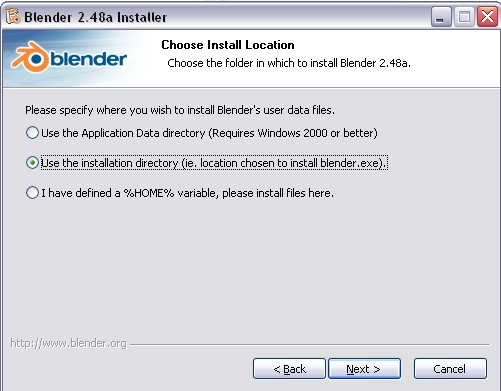 2 instalar Blender seleccionar en la instalación de los archivos de usuario use the installation directory.