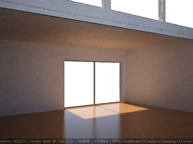 Hola. Cre una escena interior en 3ds Max 2009 con el Vray 1.50 service pack 2, pero se demora bastante cuando renderizo, todavía no logro entender los parámetros del Vray y parece que está versión es más lenta (así leí en una página).