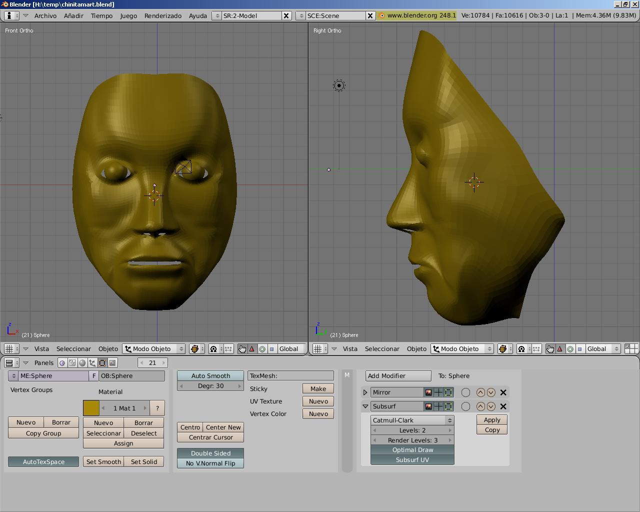Bueno. Aquí os dejo mi último trabajo, que a la vez, es mi primera cara con Blender (y con cualquier otro software). Justo antes de meterle mano con el Sculpt Mode.