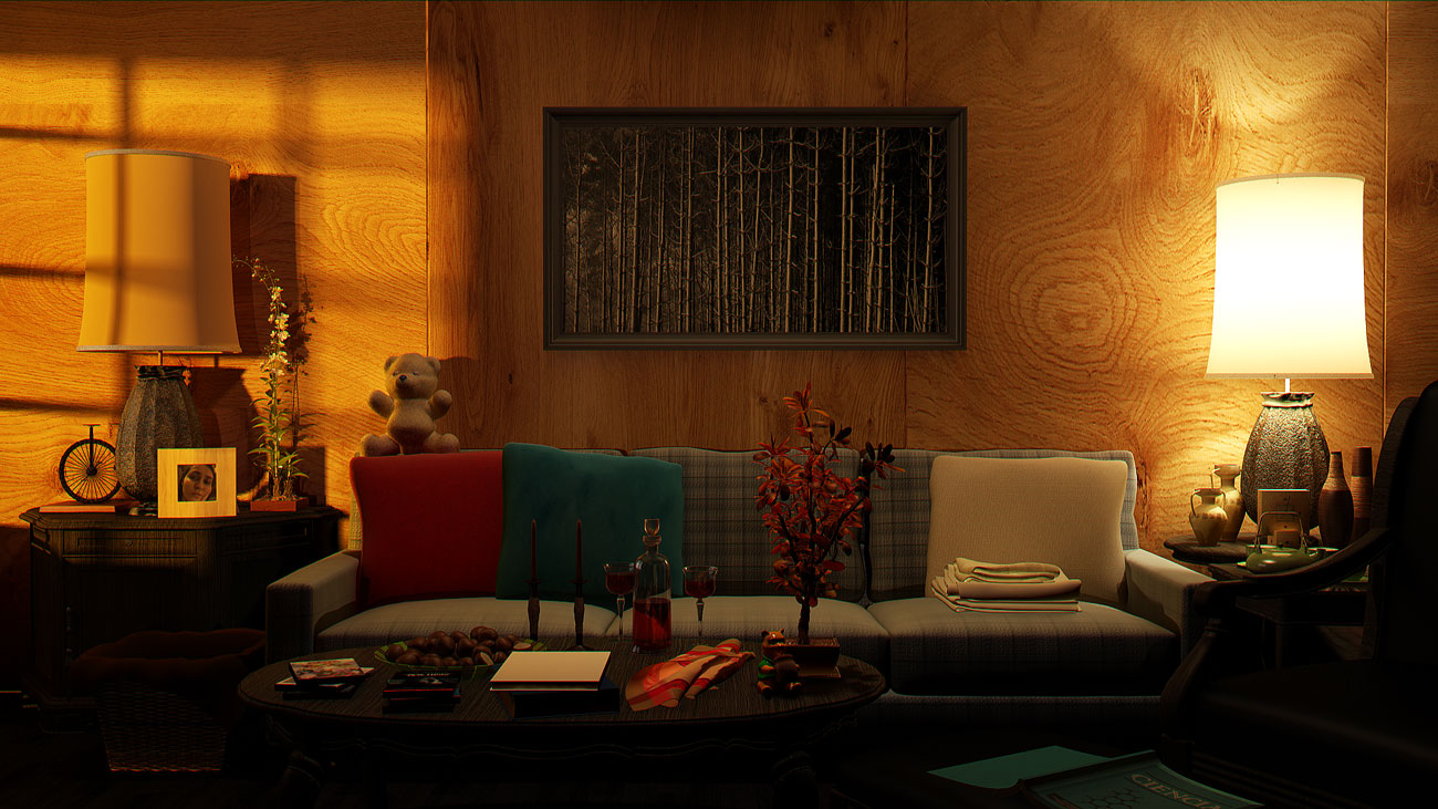 Mi primera crítica y breve. Imágenes muy convincentes y me gustan, solo dos detalles. El reloj marca la misma hora en todas, supongo que, será un problema de pilas. El sofá en la última imagen, parece iluminado por una luz demasiado fría, le falta poco de calidez.