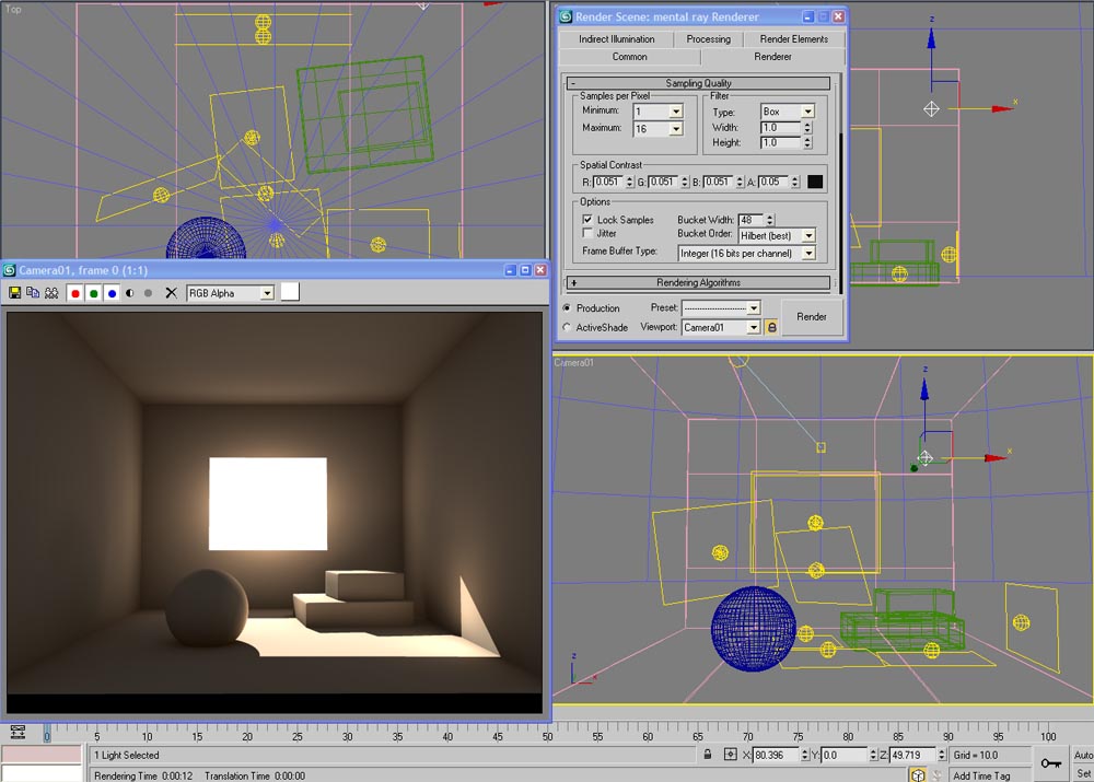Yo pensaba lo mismo que tú, sobre todo por que trato de hacer lo más posible en mensaje, pero cuando me leí lo que voy a publicar a continuación me cambio hasta cierto punto mi visión, aunque no dejo de pensar que después que salga la imagen ya con el oclusión en los materiales no sería mal tener el completo para componer posteriormente. Aquí te dejo el enlace. http://mentalraytips.blogspot.com/.