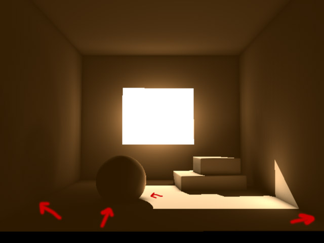 El Final Gather proyecta puntos desde la cámara, desde esos puntos salen rayos que detectan los materiales del entorno, y devuelven la información a los puntos proyectados. Por eso si tienes una pelota azul sobre el suelo o cerca de una pared, ambas se tiñen de azul, supongo que, me habéis entendido bien a la primera, pero por si acaso. Con eso que dices se consigue esto Birkov?