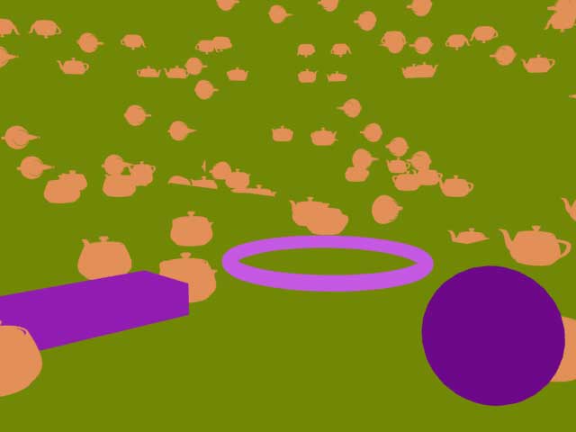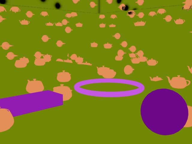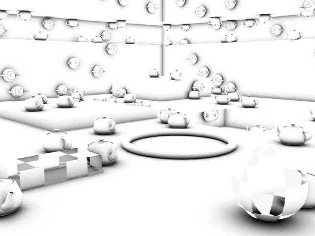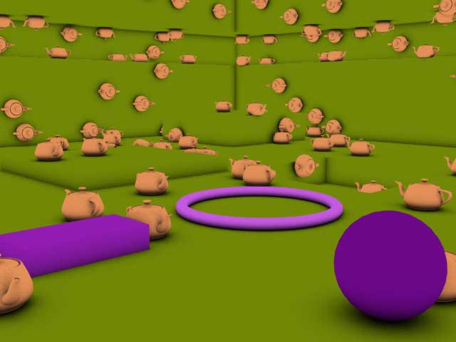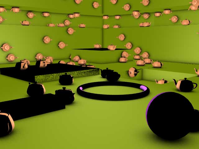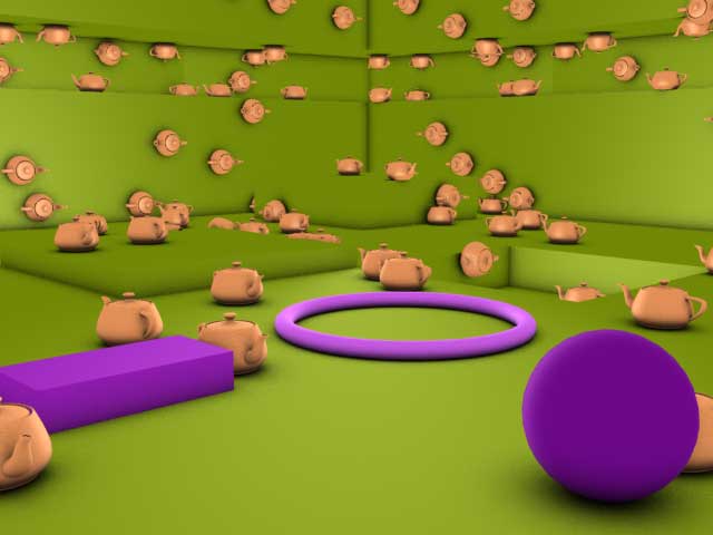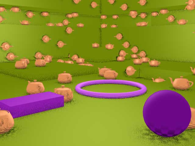 Con la coña la escena tiene un millón y pico de polígonos, pero como todas las teteras eran instancias renderizaba rápido.