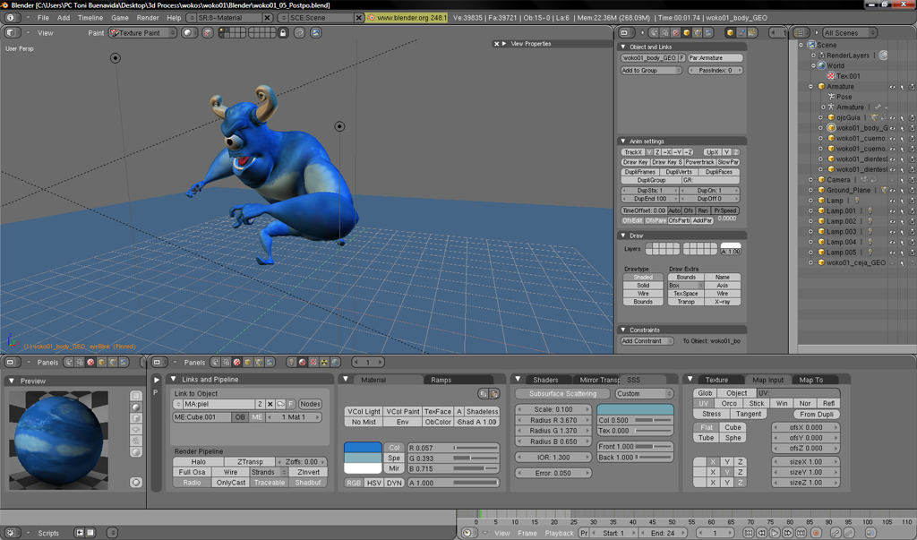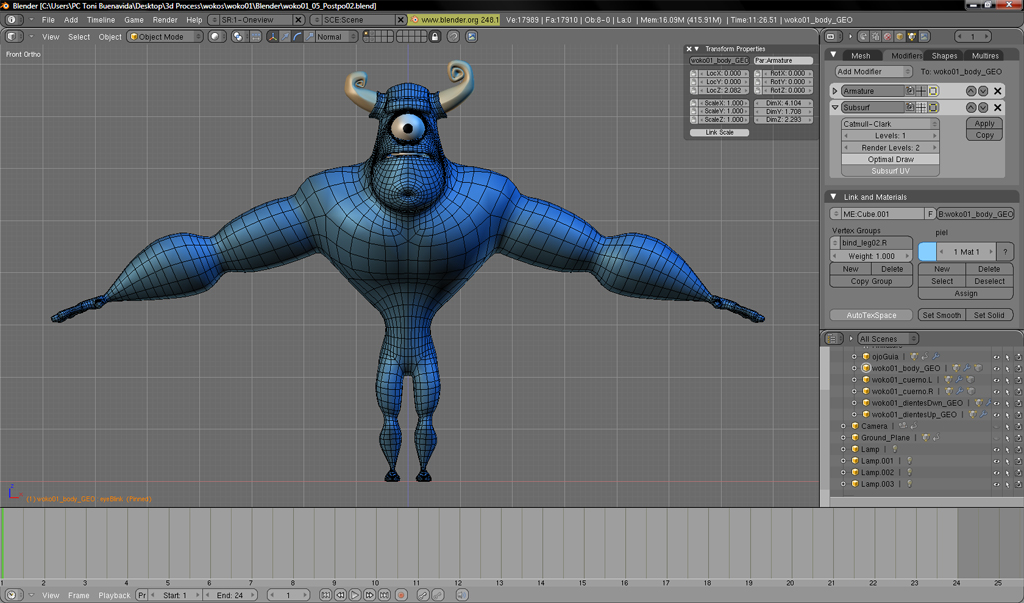 Hola. La verdad es que tiene un setup basic para hacer las posturas y tal, ahora estoy haciendo una segunda propuesta y después finalizaré el rigging para que sea animable.
