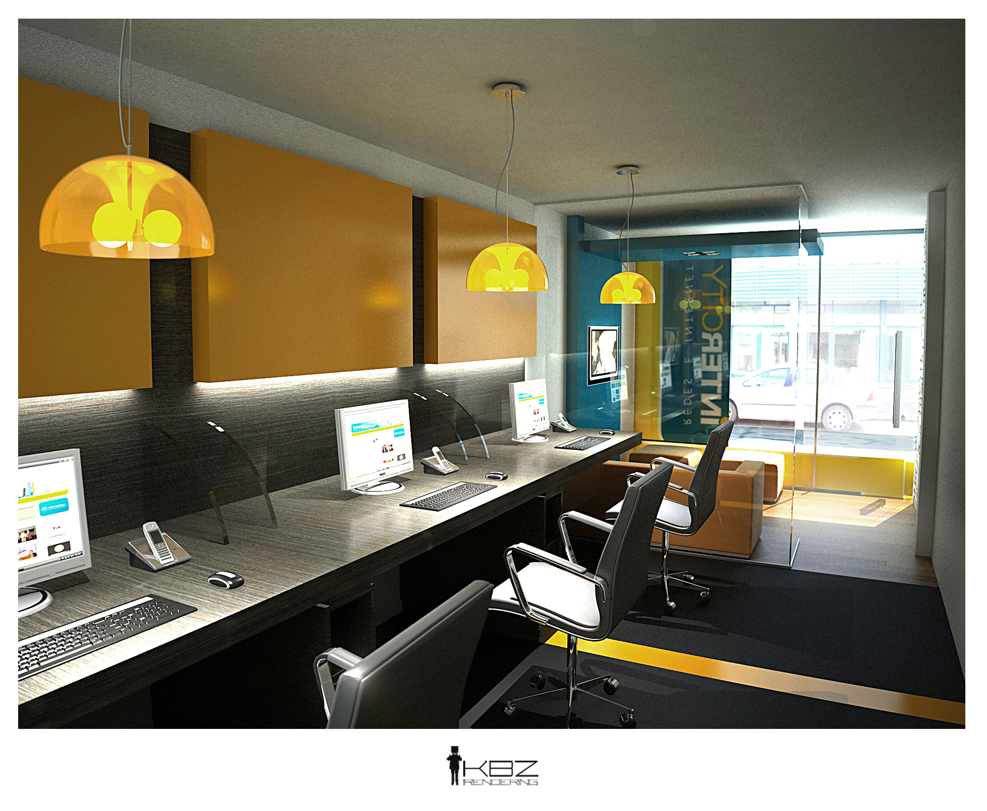 Hola, en primer lugar decirte que las imágenes interiores, ese quemazón que está en las pantallas del ordenador las veo muy quemadas igual como las sillas de trabajo, en el primer interior no me gusta cómo a quedado la pared respecto al techo el granulado que le pones tiene demasiado Bump creo, e igual como dice el compañero le faltaría el zócalo para dar más realismo, y las ventanas entra mucha luz respecto al interior, en segundo lugar las imágenes exteriores me gustan más, solo una cosa la pared de piedra que está en la sombra esta difuminada no sé que habrá pasado ahí, pero muy bien, adelante.