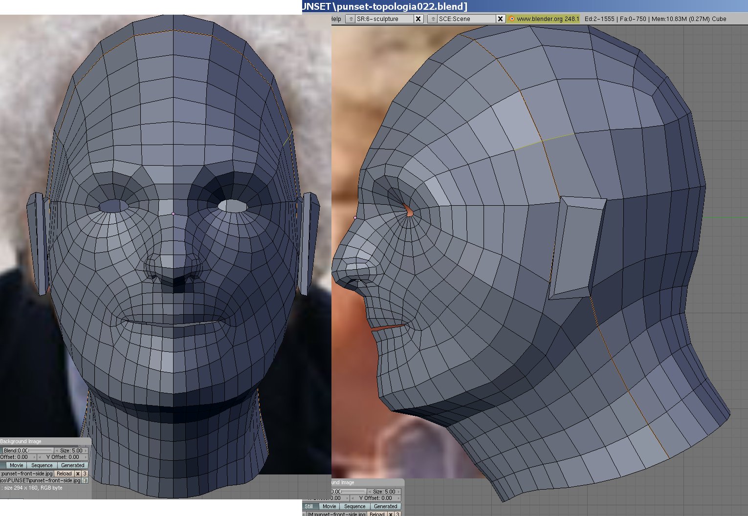 Y ahora me viene a la mente, no es más aconsejable tener la parte frontal de la cabeza con polígonos más pequeños (eso si guardando las proporciones entre ellos como tu comentas)