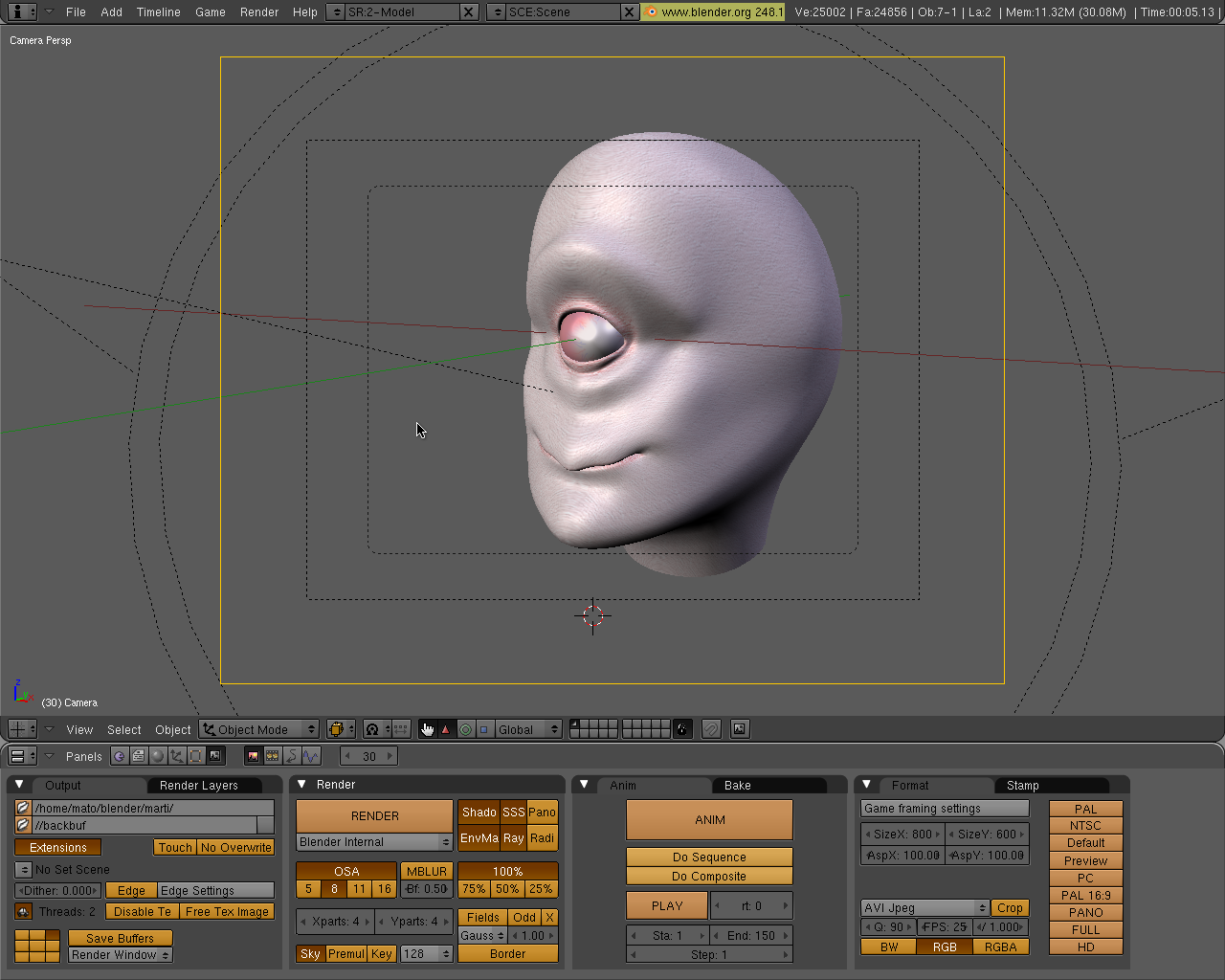 Pruebas y resultados con shape key para animar vértices de una Autodesk Maya, en este ejemplo se uso para animar párpados, boca, ceja y la pupila del ojo.