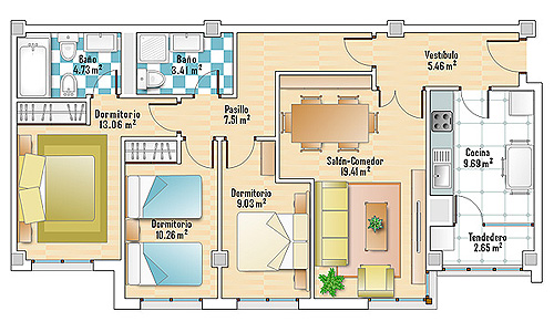 ¿Alguien sabe con que programas se pueden hacer planos como el que envío en la imagen. También quería saber si alguien conoce algún lugar de bloques para AutoCAD, pero que fueran como dibujos, con colores y demás, como los muebles del plano que adjunto.