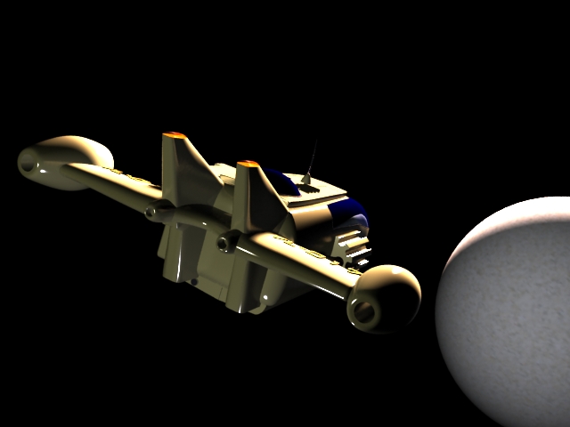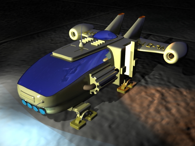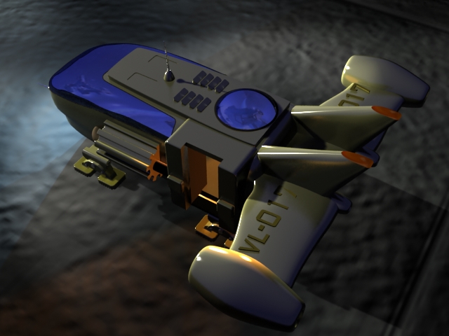 Ilumina más la escena para que se vea mejor la nave. Pon un perfil y una imagen de frente para que veamos mejor los detalles y ya que estas la malla. Saludos.