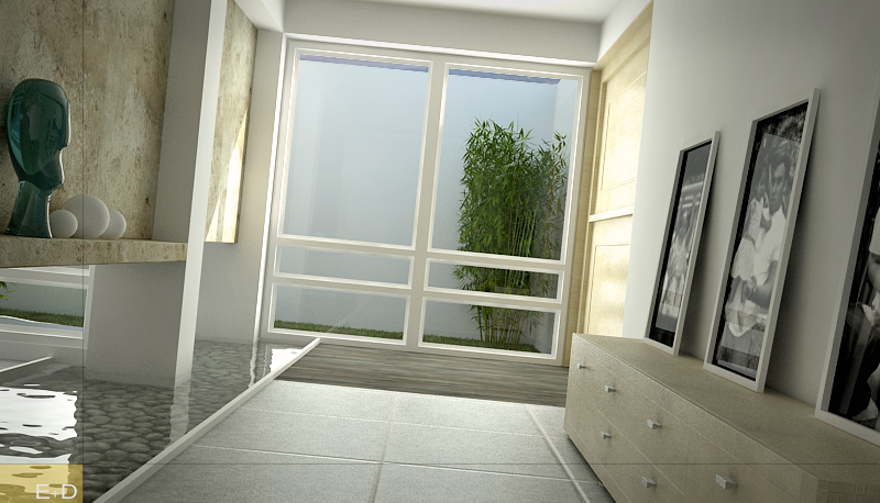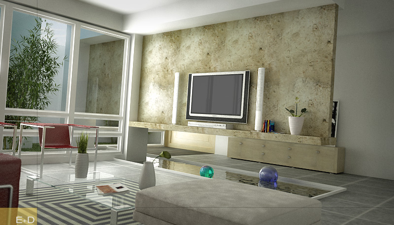 Me encanta ese efecto de Glow, yo no sé cómo se consigue, si directamente del render en Vray o es postproducción. La textura de la pared tras el televisor debes trabajarla un poco, está demasiado mosaico. Saludos y muy buenos renders.