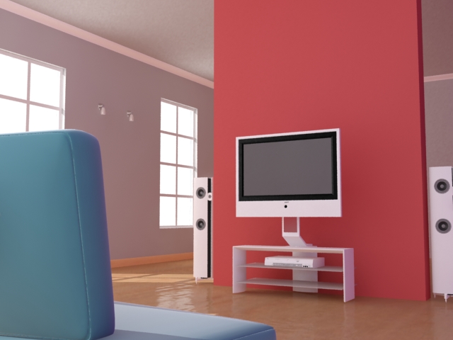 Y lo de siempre, algo más de énfasis en las texturas, sobre todo del suelo y del sofá.