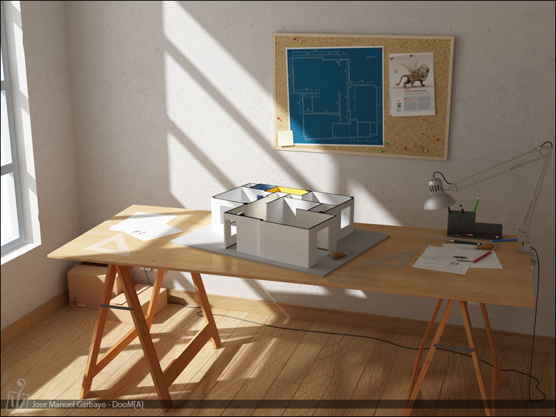 Primera imagen que realizo de un interior y que término. Realizado en 3d Studio Max 9 + Vray, texturas manipuladas/creadas por Photoshop.
