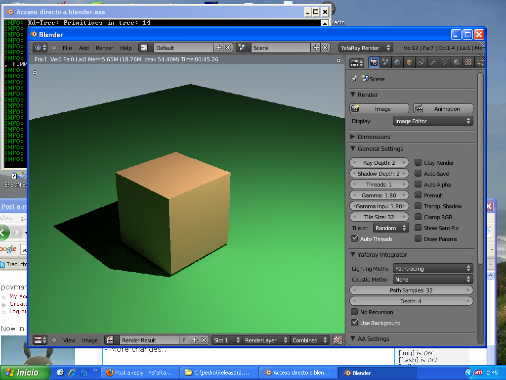 Vaya. Es posible que sí, sobre todo por si algún otro usuario aporta nuevos datos y se mezcla todo un poco (los tutoriales de YafRay y las respuestas del yafa0.1.2). Aunque tampoco pasa nada. Yo por lo pronto pongo el enlace a tu mensaje en la primera página. Si alguien lo cambia que avise y actualizo el enlace.