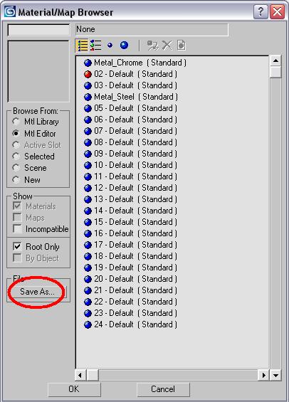 Luego abrís el otro archivo y en el buscador de mapas/materiales vas a mtl library y vas a abrir para abrir el archivo (*.mat) que guardaste. Luego ya tienes los materiales en tu escena y los seleccione uno a uno y los aplicas.