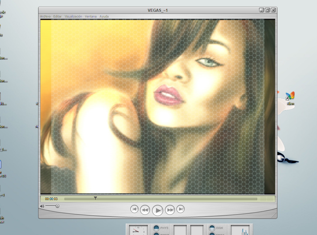 Tengo el video en una capa, y en otra capa por encima tengo una imagen con un alpha a modo de rejilla, que dejo ver en algunos momentos fugazmente para hacer unas transiciones entre imágenes. El problema que tengo es el siguiente: