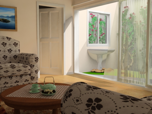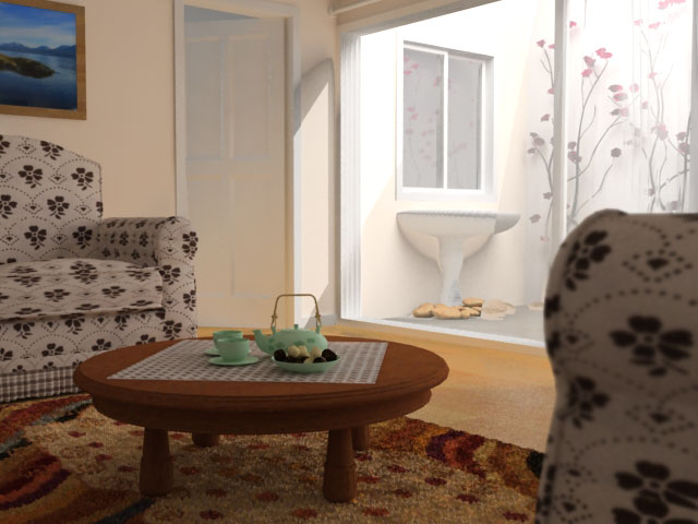Hola qué tal, esta vez modele el living de la casa de mis abuelos y le trate de buscar la vuelta a la iluminación y al modelado, a ver qué opinan.