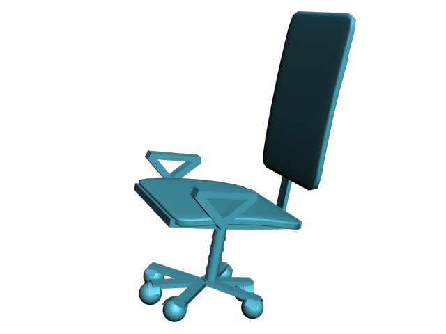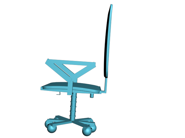 Bueno, mientras espero consejos para mí otro diseño, la estantería de libros (ver aquí), decidí modelar tranquilamente una silla giratoria, y os dejo el primer borrador para que me digáis que podría mejorar.