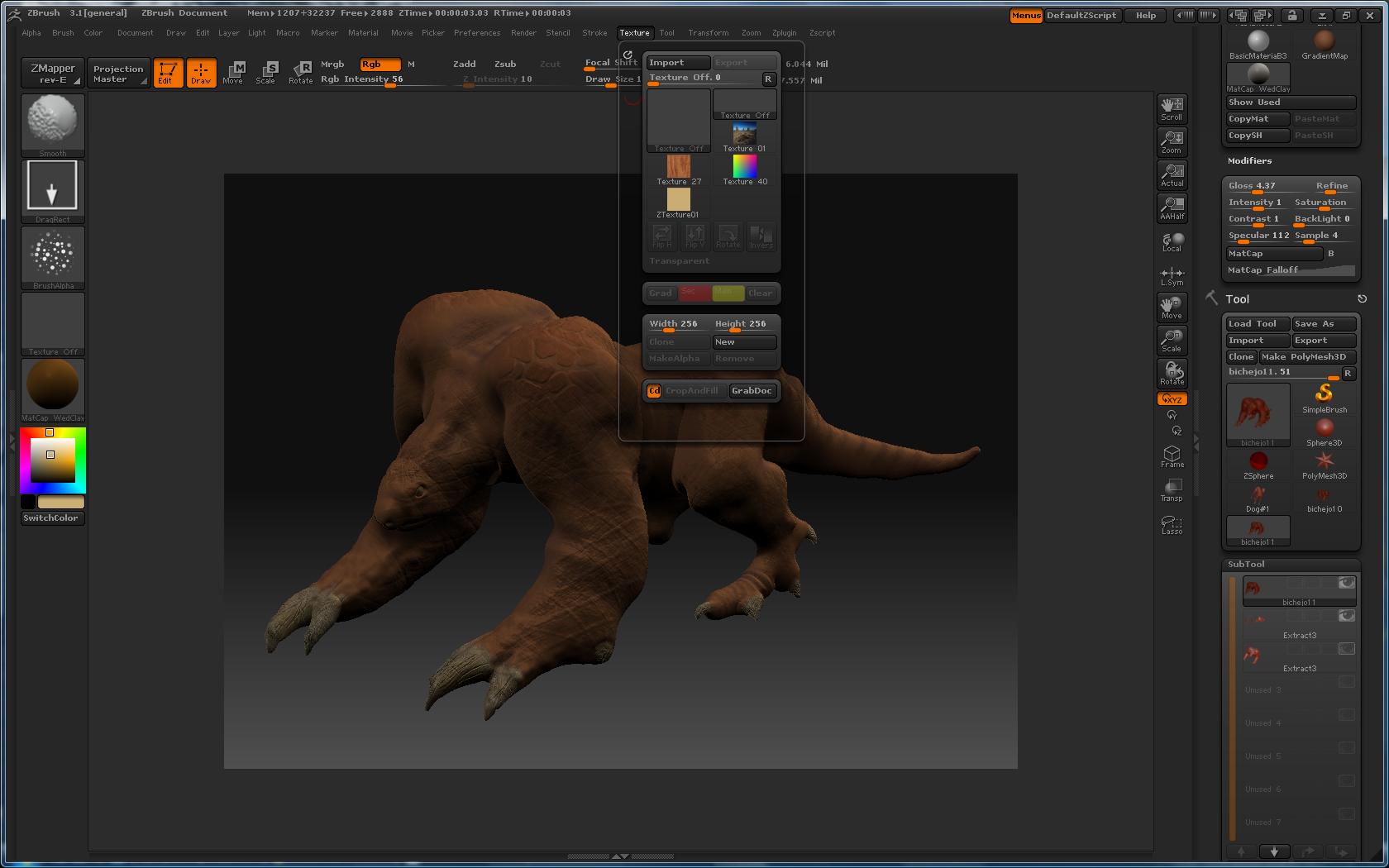 Freman, no tengo ni idea de ZBrush, pero seguramente en vez de esperar a una respuesta en el foro, si buscas en Google o en la ayuda del programa seguro que localizas antes la solución. Así te ahorras el abrir un post, y así no le quitas tiempo al que te ayude.