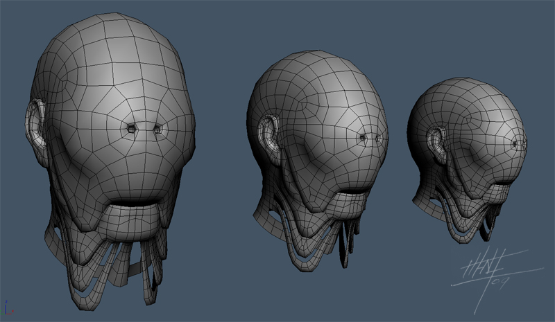 Gracias por los comentarios. Ahora he empezado un poco con la retopología del modelo para poder hacer que el modelo habrá la boca y para tener una malla mucho más limpia.