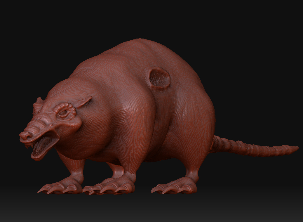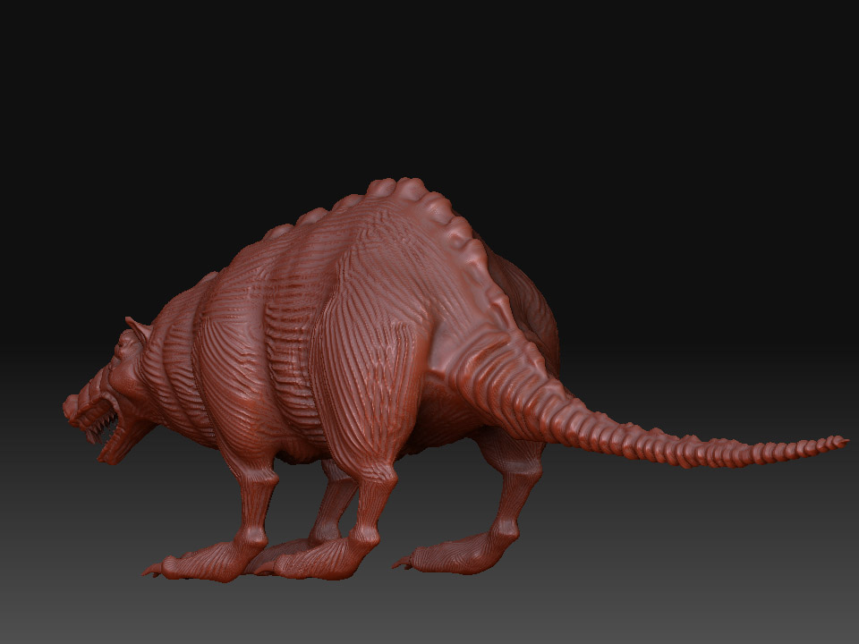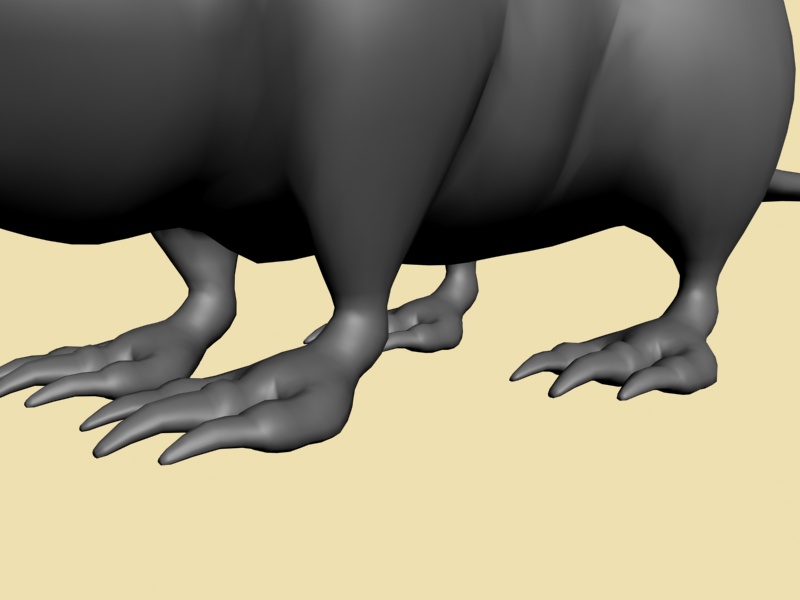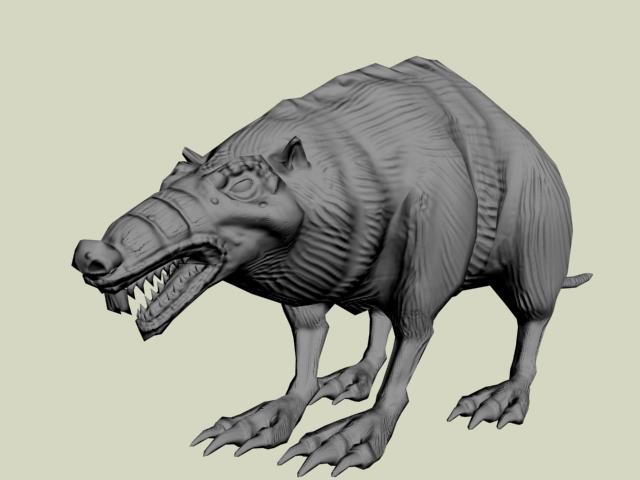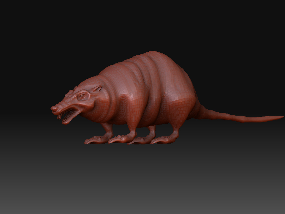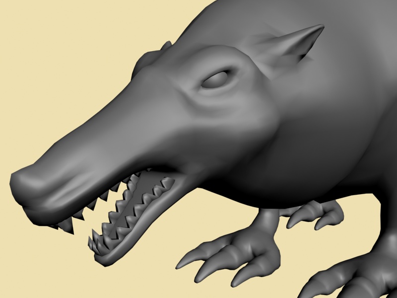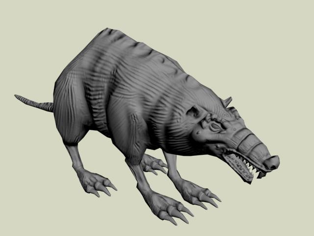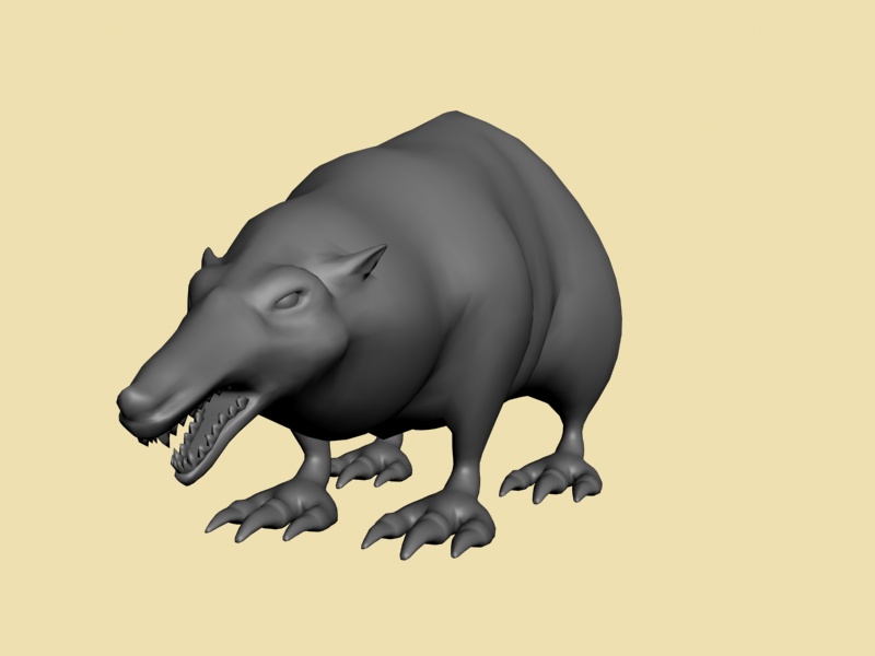 Gegege has avanzado mucho veo que le diste duro con el modelado, al final se ve más un animal mutante, acaba de decidir, que más quieres aflorar de animal? Yo por lo visto me parece que aún tiene el cuerpo de una rata por lo ovalado según la vista de arriba y de perfil, aún no sé que quieres lograr si un 50 y 50 o aflorara más una parte que otra, ya que, al principio la presentaste como rata, pero el hilo va modificándose y al idea va cambiando, a mi parecer me gusta cómo viene el modelo, por ahí le pondría más énfasis en algunos detalles como crítica constructiva; (le mejoraría más la que respecta a la cabeza es decir que se diferencie un poco más la misma del cuerpo del animal, las orejas si es mitad lobo deberían ser un poco más grandes o quizá más llamativas, ge sino pareciera que fuesen orejas de hámster, las patas y garras buen se ve una mezcla de postura de rata y garras de lobo es decir donde apoya las patas parece más rata, pero las garras que tiene quizá denota más a lobo), buen espero sirva es solo una crítica el resto en general va tomando buena forma dale duro y ánimo.
