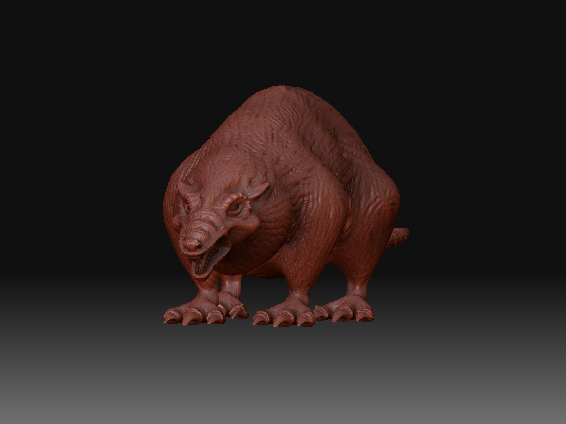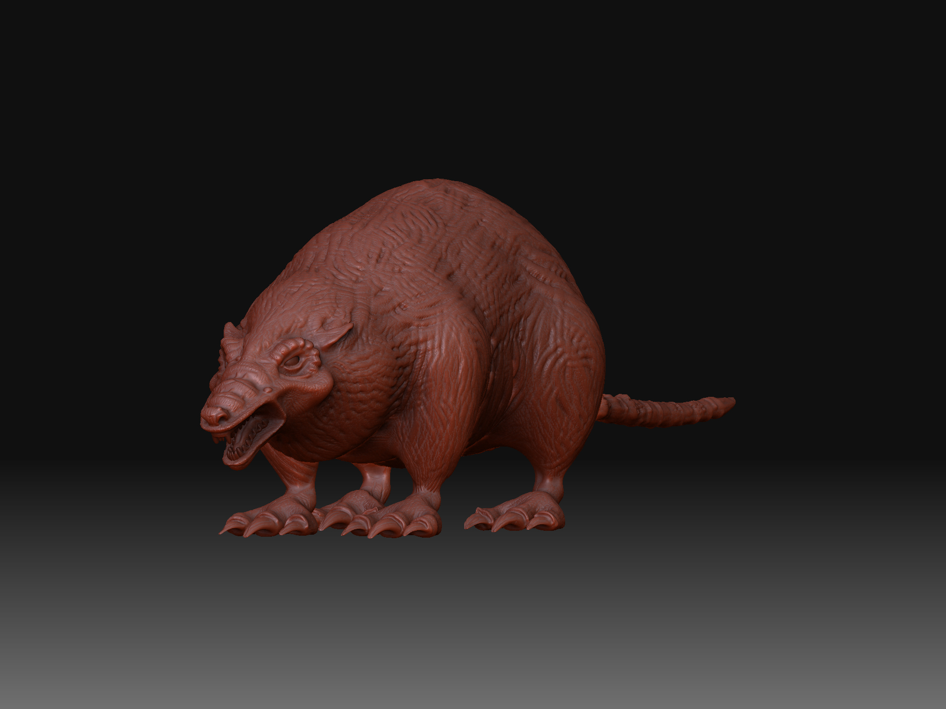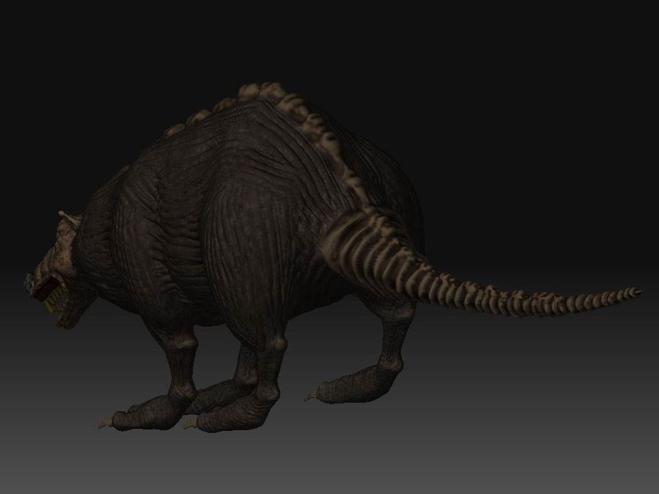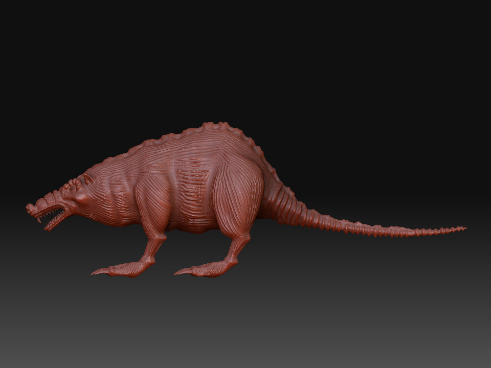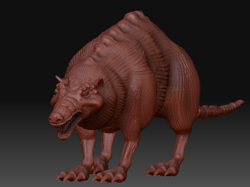 Gegege has avanzado mucho veo que le diste duro con el modelado, al final se ve más un animal mutante, acaba de decidir, que más quieres aflorar de animal? Yo por lo visto me parece que aún tiene el cuerpo de una rata por lo ovalado según la vista de arriba y de perfil, aún no sé que quieres lograr si un 50 y 50 o aflorara más una parte que otra, ya que, al principio la presentaste como rata, pero el hilo va modificándose y al idea va cambiando, a mi parecer me gusta cómo viene el modelo, por ahí le pondría más énfasis en algunos detalles como crítica constructiva; (le mejoraría más la que respecta a la cabeza es decir que se diferencie un poco más la misma del cuerpo del animal, las orejas si es mitad lobo deberían ser un poco más grandes o quizá más llamativas, ge sino pareciera que fuesen orejas de hámster, las patas y garras buen se ve una mezcla de postura de rata y garras de lobo es decir donde apoya las patas parece más rata, pero las garras que tiene quizá denota más a lobo), buen espero sirva es solo una crítica el resto en general va tomando buena forma dale duro y ánimo.