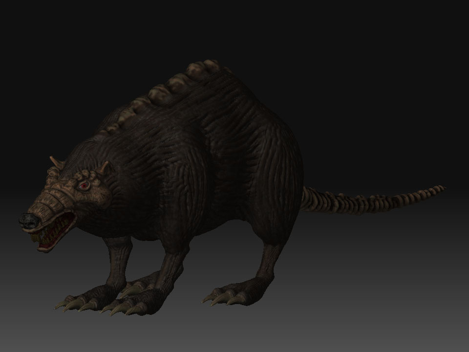 Hola de nuevo, bueno después de unos días de meditación con este modelo he decidido hacer aflorar su parte de lobo más que de rata y este es el resultado. He hecho algunas pruebas con Normal Map y el modelo tiene 3256 tris ya me diréis que os parece. Un saludo.