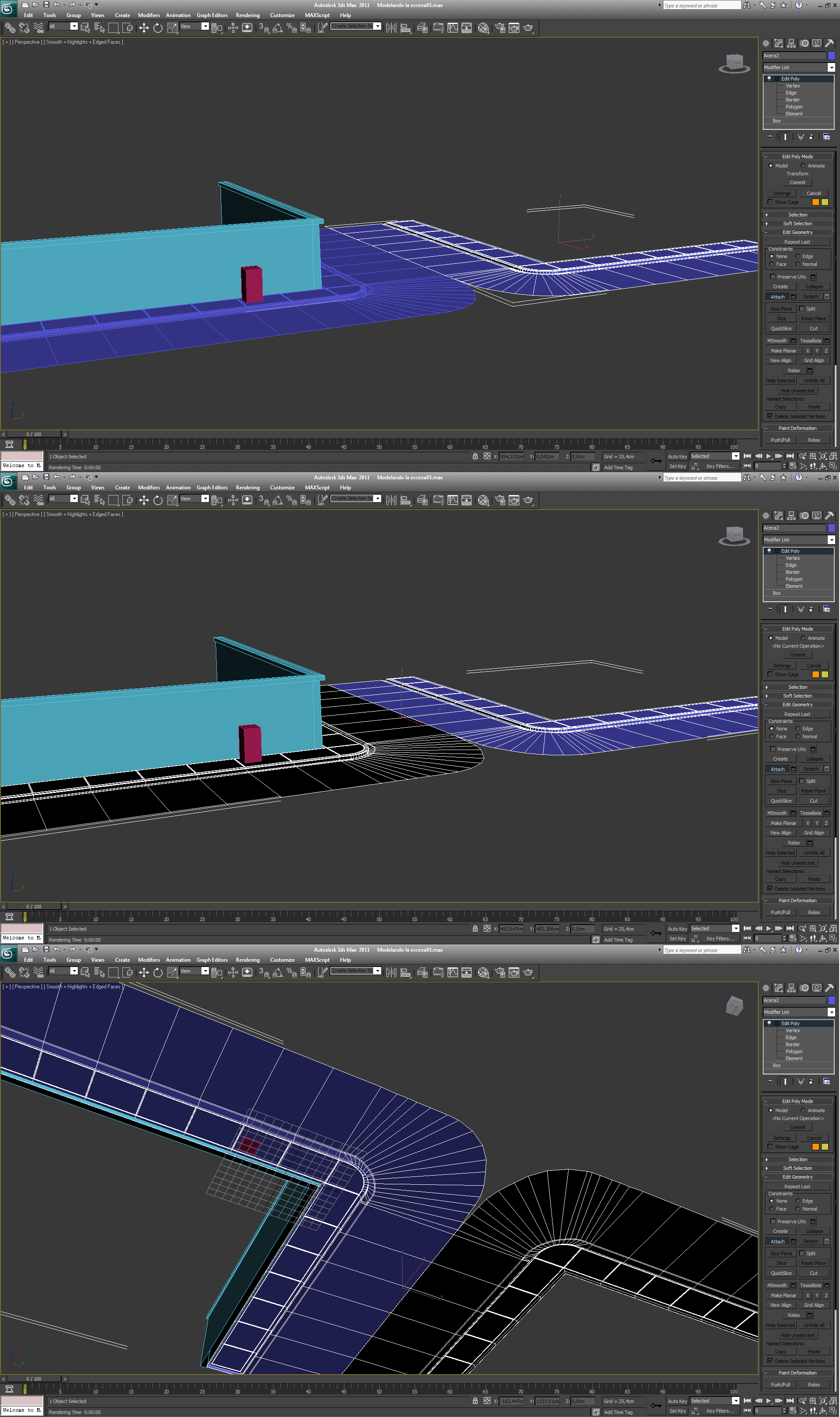 Hola compañero, me ocurre lo mismo que a ti, os mando una imagen para que lo entendáis. Tengo una calle a la cual hago un reflejo para unirlo. Para poder fusionar sus vértices necesito hacerlo todo un conjunto con attach, sin embargo, cuando pulso con la herramienta sobre la otra parte se me vuelve negra. Como veis en la última imagen lo que hace es darle la vuelta a la textura y da igual que le cambie la textura, la renderice o haga lo que sea que sigue igual.