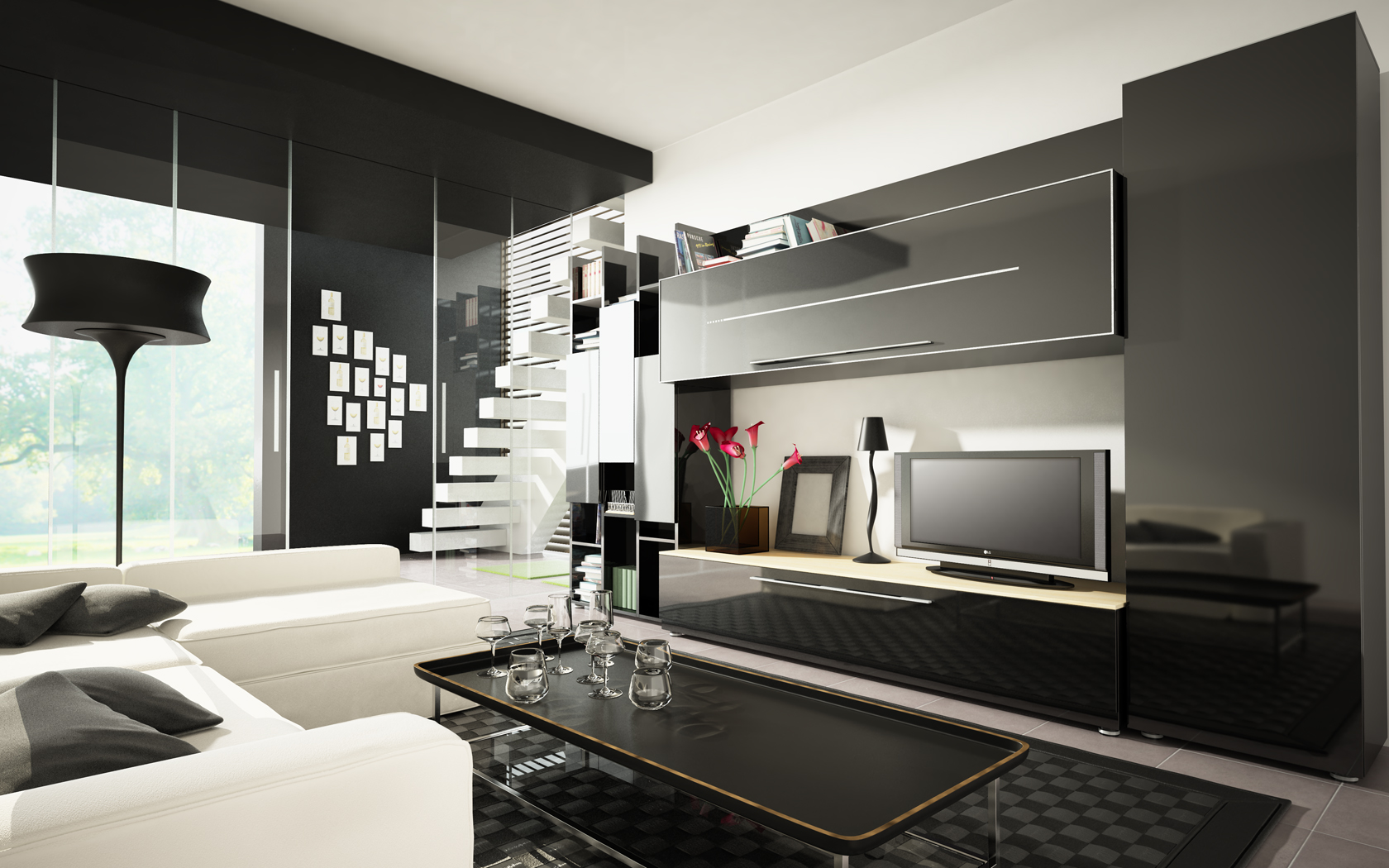 Fijaros que las sombras en la escena son incoherentes y como el mueble y los objetos del mismo proyectan sombras a un lado y el sofá y lámpara hacia otro muy distinto. Un saludo.