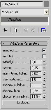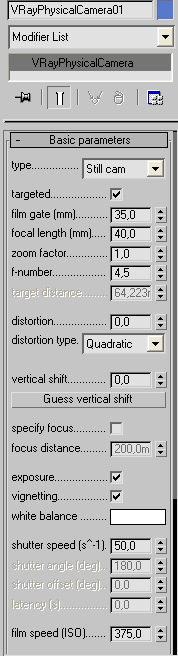Lo dicho, aumenta la intensidad del sol a 1 y juega con los parámetros de la cámara Vray. Notaras la diferencia.