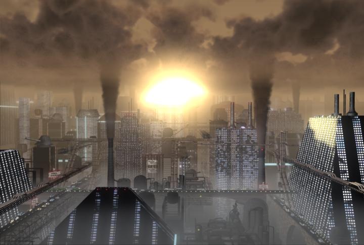 Muy chulo, casi tiene de todo =o, incluso te has atrevido con humanos. (detallado hasta el milímetro). La ciudad en general lo mejor, aparte de los reflejos, explosiones.