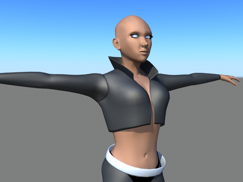 Hola con permiso. (vengo persiguiendo a Infograph por el foro, ahora con razón). Lo que veo es que la piel tiene demasiado brillo, tira más a porcelana. El pelo tiene la raíz un poco gruesa (yo ando también haciendo experimentos con el Hair and Fur). En general me gusta cómo va quedando.