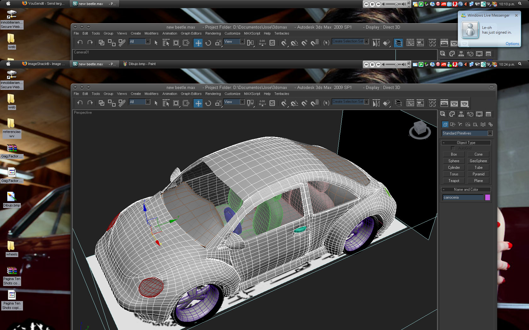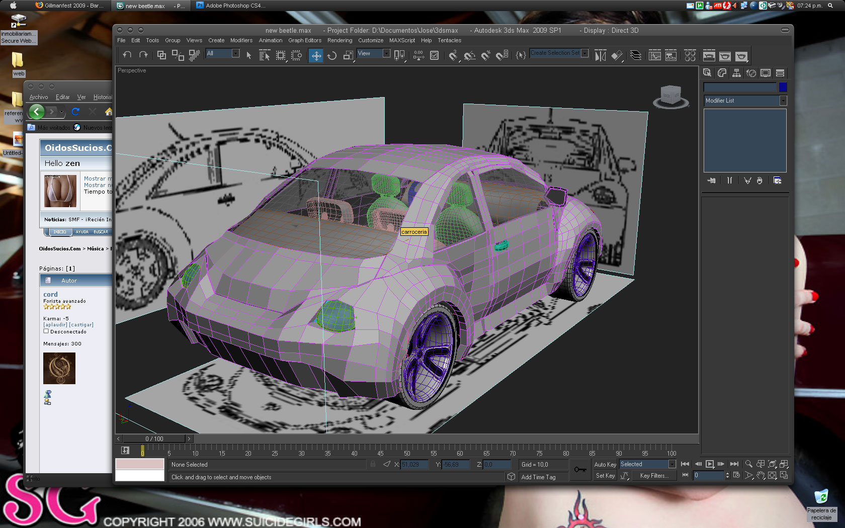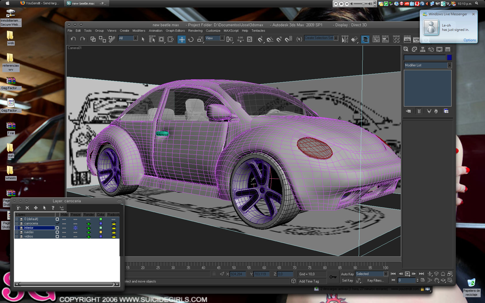 Si es tu primer modelo no está mal para empezar, pero tienes fallos que seguro tu ya has visto: tienes que, arreglar los bollos que tiene la chapa y tener cuidado con la alineación de los vértices. En un modelo de un coche da mucho cante al ojo que los vértices no tengan orden (se ve bien en el capó de tu coche), igual puedes arreglarlo con relax, pero intenta hacerlo a mano y luego un poco de relax.