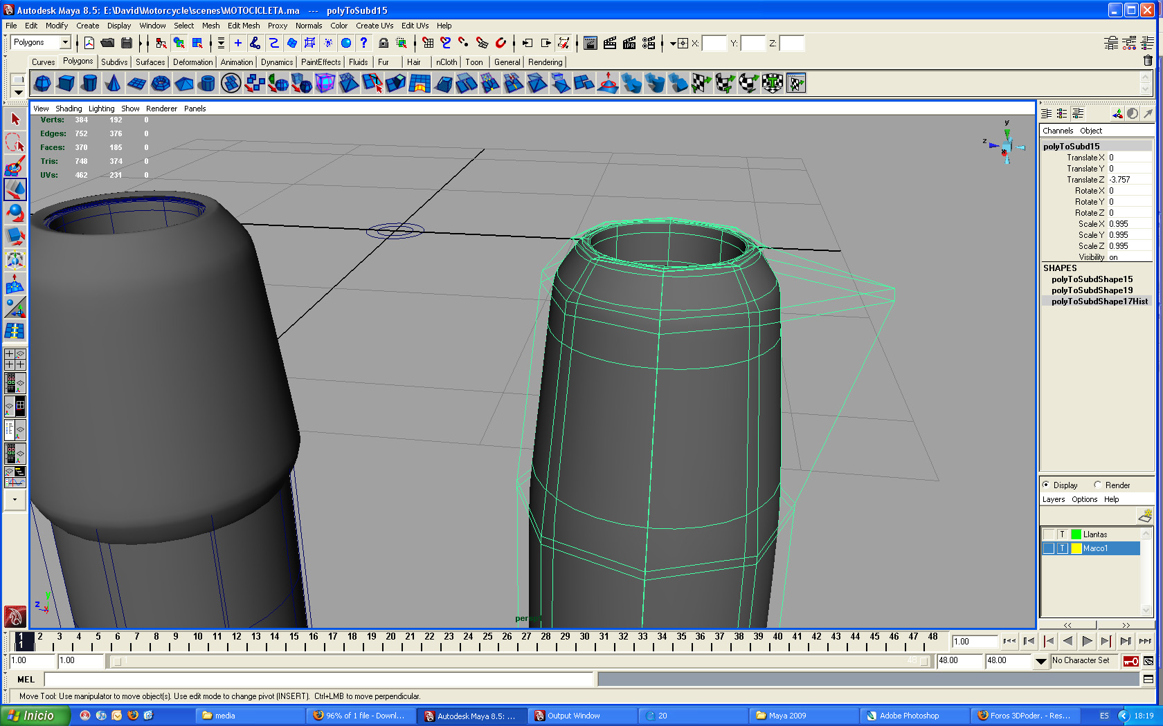 Hola amigos, estoy en pleno modelado de una moto de un tutorial, y resulta que me pasa algo muy curioso, me aparecen unas líneas como si fuesen wireframe on shade, pero, pero no son estas, paso cuando convertí el poly a subdivisiones y luego cuando paso de nuevo a poly me sigue apareciendo estas líneas como si tuviese otro objeto seleccionado sin verse, pero tampoco es esto, solo es un objeto sin duplicarse, que puede ser, ¿cómo se quitan estas lneas, aquí dejo unas fotografías para que aprecien, miren que en los otros dos objetos seleccionados de los extremos no aparecen estas líneas y también son subdivisiones. Un saludo.
