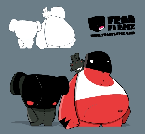 Hola. Aquí os dejo unos bocetos que estoy realizando para el diseño de un muñeco vinyltoy. Cuando me decida por alguno lo modelaré en 3d. De momento tengo estos. Espero que os gusten. (las decoraciones no son definitivas).