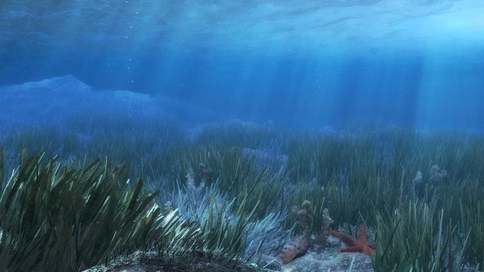 Me gusta mucho, un buen fondo mediterráneo, con su correspondiente pradera de posidonias y muy bien ambientado. Yo le añadiría algún erizo ramoneando por ahí, y tal vez alguna julia, alguna castañuela o algún serrano, que son muy frecuentes por ese tipo de fondos y rellenarían un poco el azul.