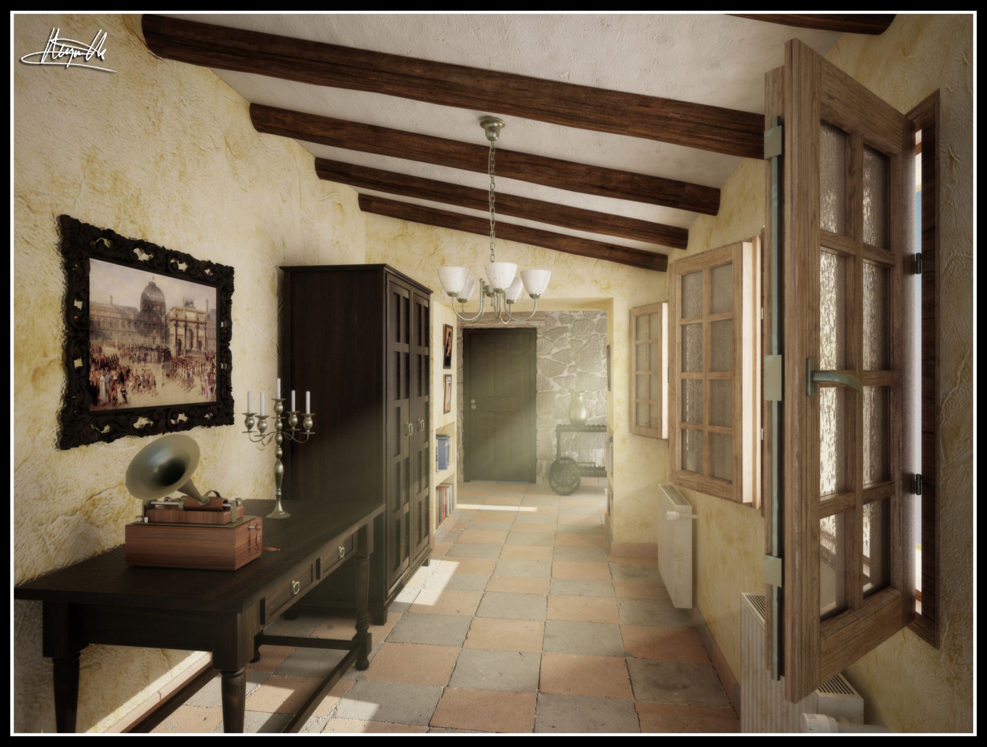Hola a todos, aquí os muestro un pequeño proyecto que consta de 2 o tres vistas sobre la casa de la abuela de un compañero, de momento el trabajo constara de 2 imágenes una interior y otra exterior que publicaré en breve. Espero que me deis vuestra bendición, consejos y tal.