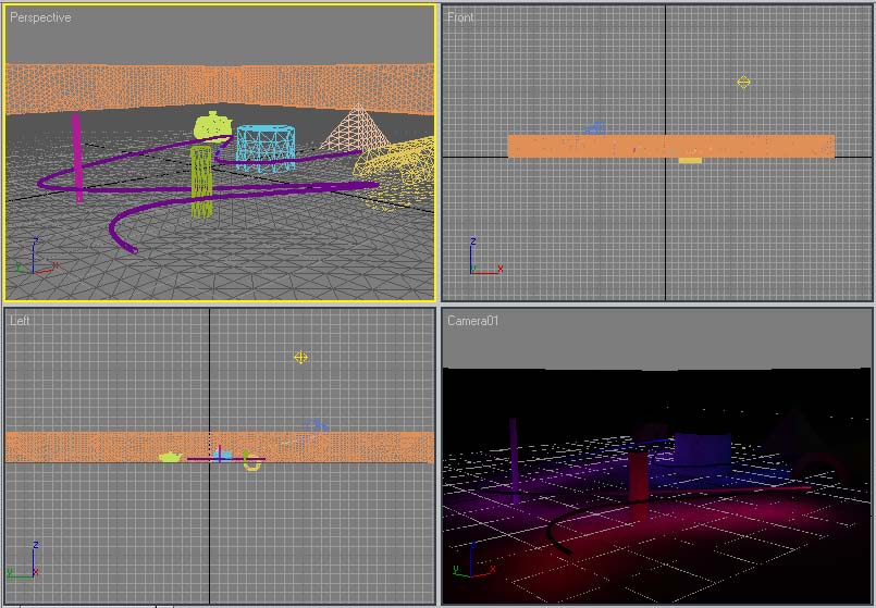 Ya tenemos los materiales hechos, se lo aplicamos a los objetos que hemos seleccionado, para que iluminen, el escenario.