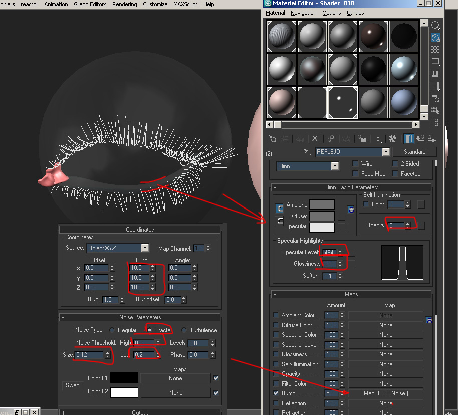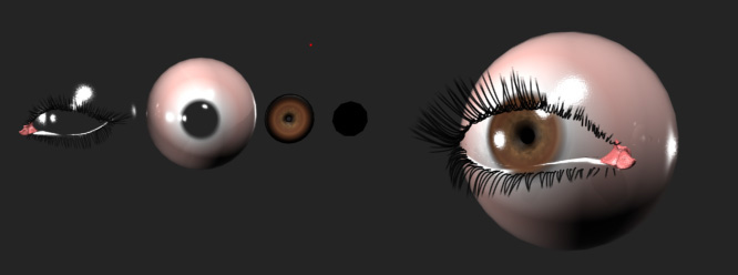 Hola manfred210308, por la red hay varios tutoriales de ojos que te pueden servir, pero te dejo uno que hice basándome en uno para Autodesk Maya, solo vi la primera parte de ahí le agregue cosas que me parecía que podría ir, y me dió un resultado aceptable.