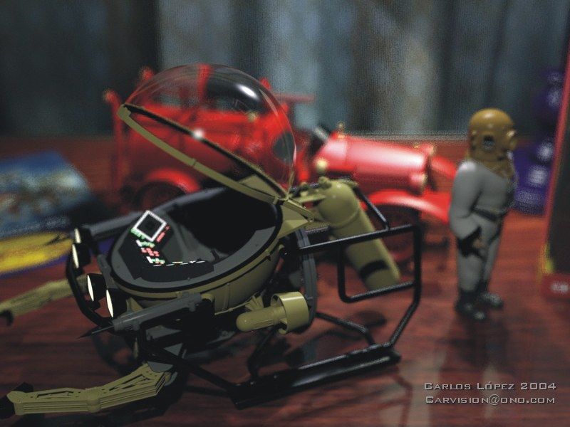 Hola carvision. Buen modelo con otras texturas podría ser tranquilamente un vehículo real y no un juguete. Un detalle que a lo mejor es insignificante, la cúpula de cristal no debería de tener un poco más de grosor?