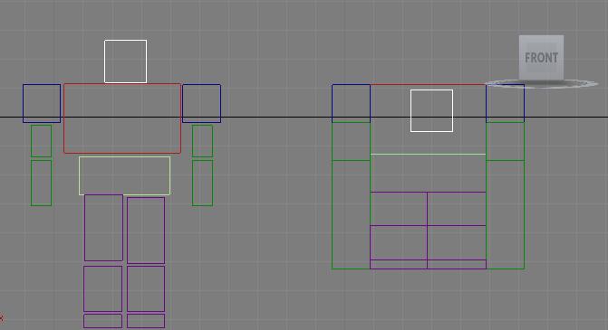 El problema es que no sé cómo hacer para transformar el cuadrado con sus diferentes partes a un robot. He probado el Morph con los cuadrados (con los mismos vértices) pero no me hace nada.