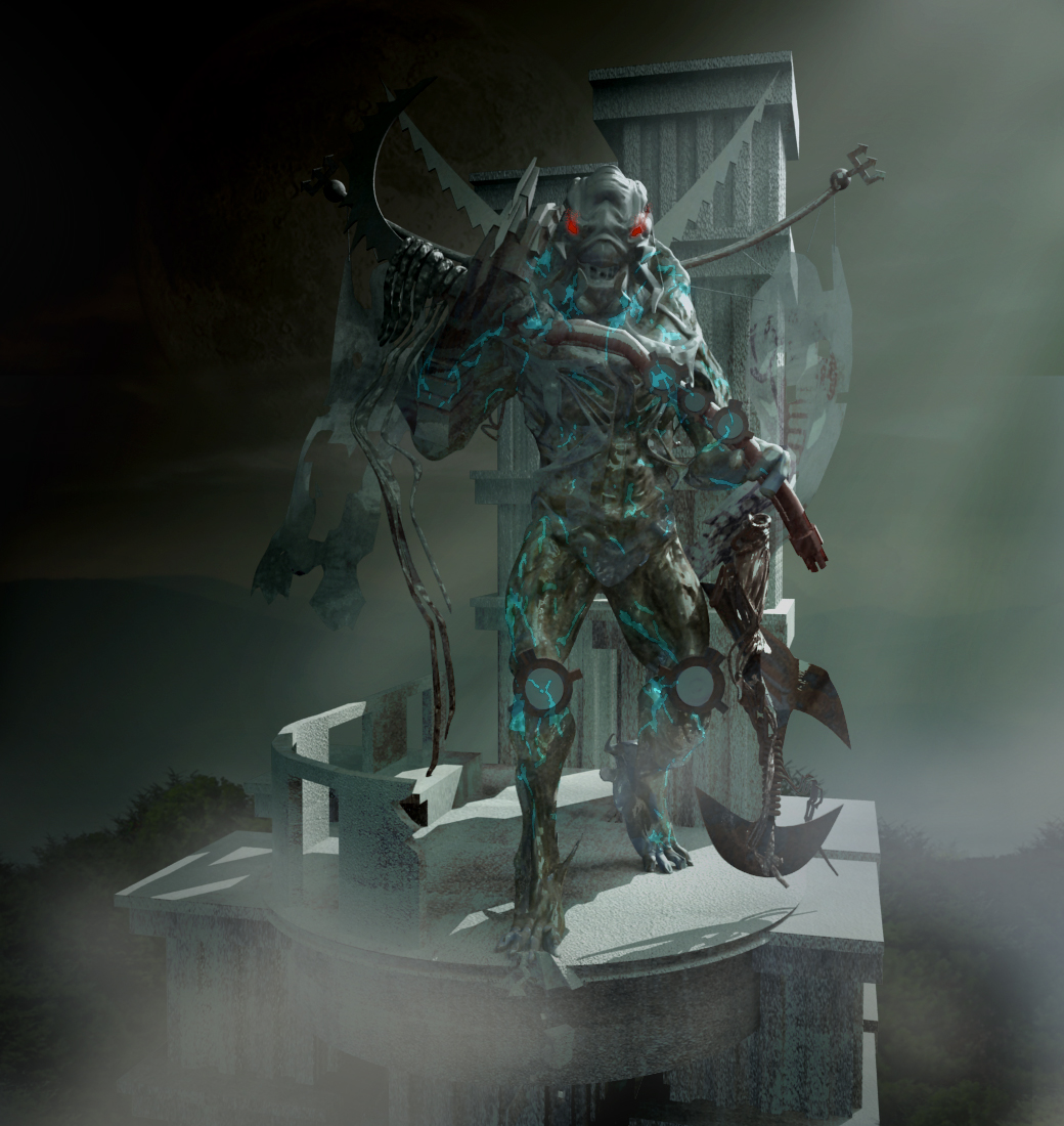 Hola Metalthink. La verdad tiene buena pinta el personaje, es diferente y eso es un plus añadido. Lo que yo haría es intentar integrarlo de otra forma con el entorno. Me explico: parece muy confusa la imagen, entre las transparencias y el entorno nublado o con humos, y las tonalidades muy similares, hacen que sea difícil de apreciar.