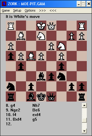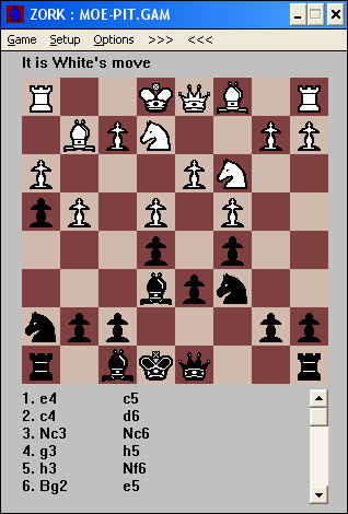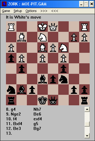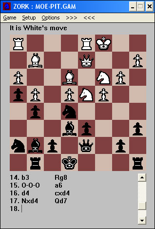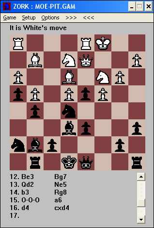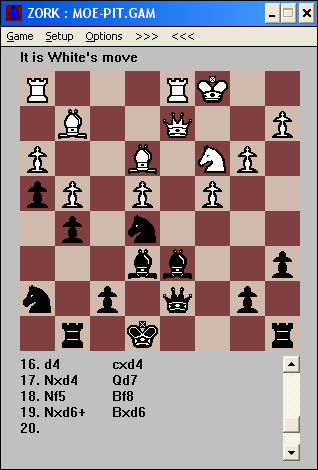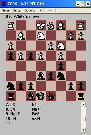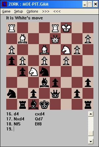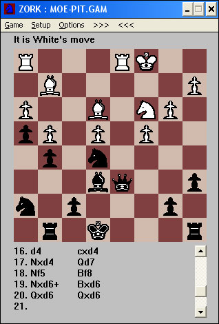 Ya ves, el zork, que piensa en inglés. Bueno en realidad no piensa, además mola, porque tiene bugs, como, por ejemplo, que un peón puede comer al paso cuando está a punto de coronar.