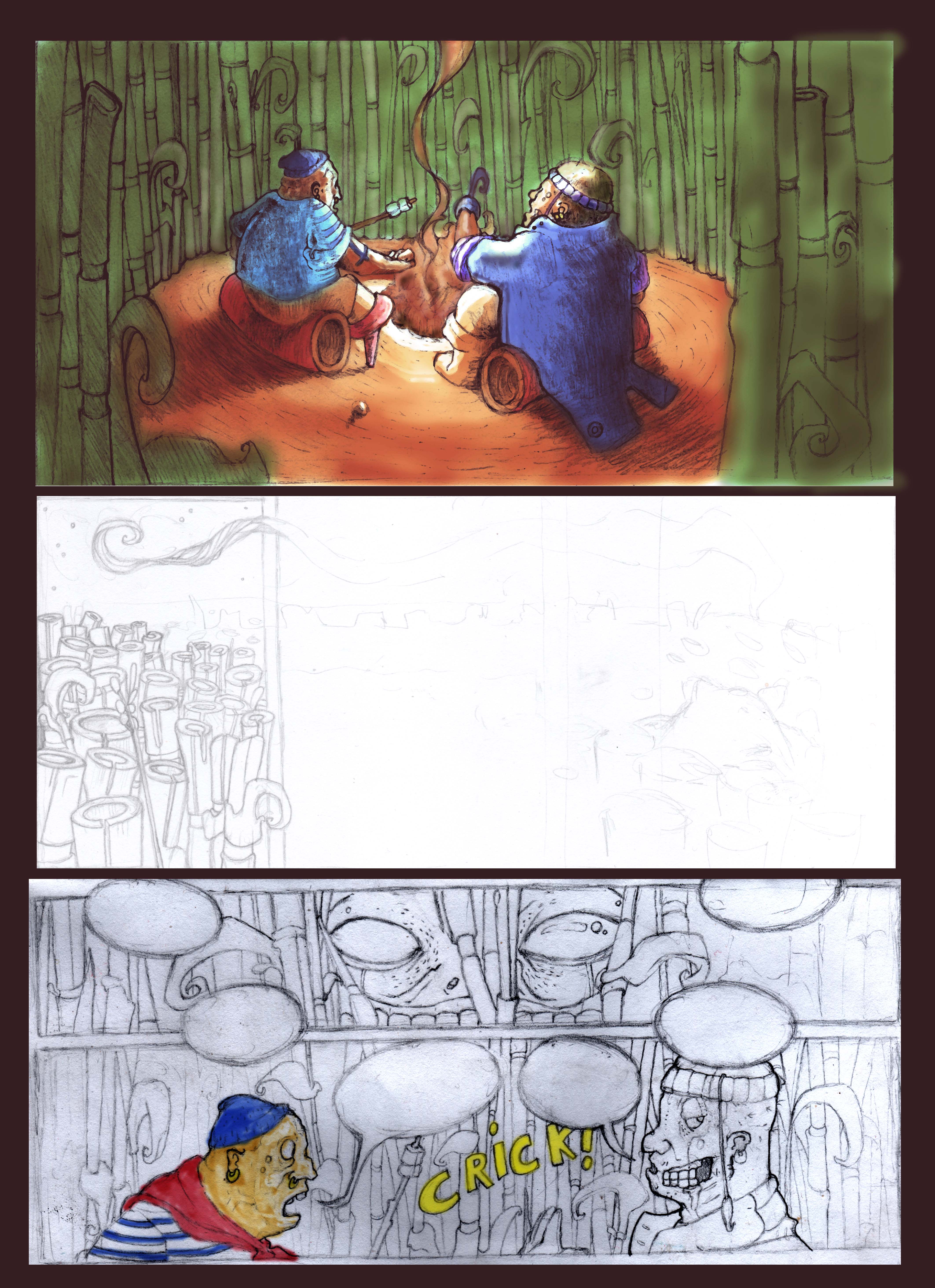 Vaya, sí esta sin acabar, siempre me pasa me canso y paso a otra, me gusta el toque esbozo es uno de mis problemas, venga vamos a intentar explicarlo, aunque no tiene gran cosa, ni siquiera esta entintado el dibujo, lo que hago es lo siguiente, dibujo con portaminas es la parte que más me cuesta porque soy muy perfeccionista con el dibujo, el portaminas me da la dureza y limpieza, luego cojo y lo escaneo a una resolución brutulalisima, la forma que he cogido de pintar al Photoshop por ausencia de tableta gráfica, que me la tengo que piyar Bamboo a6 que ya la estoy mirando (gracias Gremil por la información), es la siguiente la línea la oscurezco contraste así en blanco y negro, y voy pintando en capas con la opción de multiplicar partiendo del color más claro que quiero en el dibujo, es muy sencillo pinto en colores planos y voy duplicando capas, al estar en multiplicar el color se superpone y se va oscureciendo por lo que para sacar luces solo tengo que ir borrando conforme voy duplicando capas, trabajo al revés, de la luz a la sombra, una vez acabado, uno todo y en otra capa saco las sombras más oscuras porque he partido de un color muy claro, añado tonos o colores, y hasta ahí llego, aún me queda para acabarlo, pero más o menos eso es lo que hago espero que te haya sido suficiente. Me alegra verte por aquí a ver si nos animamos y encontramos los dos lo que buscamos dentro del cómic.