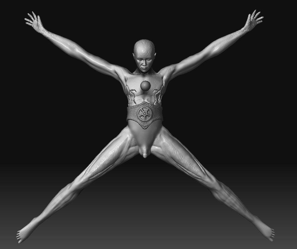 La cosa va un poco lenta, estoy añadiendo detalles y partiendo el modelo en subtool para conseguir la definición deseada y afinar los detalles, hay mucho todavía que modelar, y eso que ya me empieza a picar el gusanillo de experimentar texturas. Saludos.
