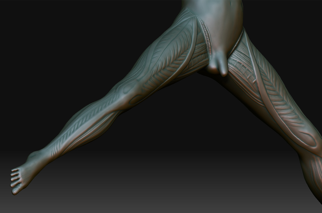 Cambio en la textura, intentando meter músculos tipo anatomía, en principio las piernas.