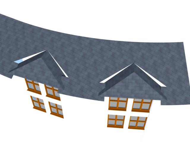 Hola. El material que le asigno al tejado me está dando problemas. Las líneas del material no siguen la curva del tejado. Le he asignado unwap UVW y un UVW map (esférico) al tejado, pero no consigo que el material se adapte al objeto.