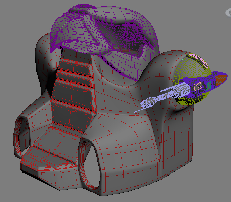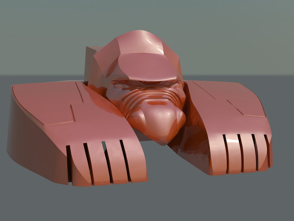 Hice unos ajustes en la sección trasera y agregue una cabina, el asunto de la cabina como en el boceto del primer mensaje, aunque está vez la idea es que está cabina tenga la forma de zoar que es el halcón en el que se transformaba sorceress para salir del castillo Grayskull.